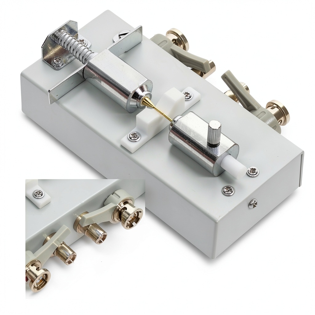 The LIKARVA SMD Digital Bridge Test Fixture is engineered for high precision measurements in electronic testing applications. It features gold-plated pins that ensure accurate contact and reliable results when testing SMD chip capacitors, resistors, and inductors. This fixture is adjustable to accommodate various component sizes, including 0201, 0402, 0603, 0805, 1206, and 1210, making it a versatile tool for industrial and scientific environments. Manufactured by LIKARVA, it is designed to meet the demands of professionals who require consistent performance in capacitance, inductance, and resistance testing. The model supports LCR digital bridges and precision testers, providing a durable and user-friendly solution for accurate component evaluation.